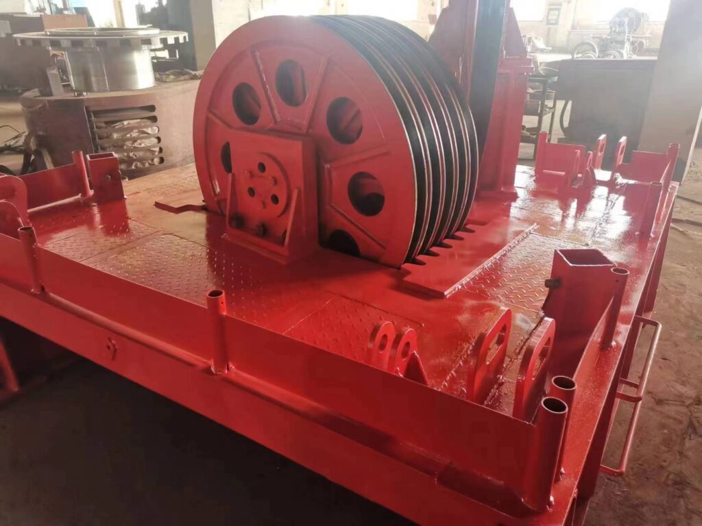 Кронблок является частью талевой системы и работает в связке с буровой лебедкой и талевым блоком, обеспечивая подъем и спуск инструмента.